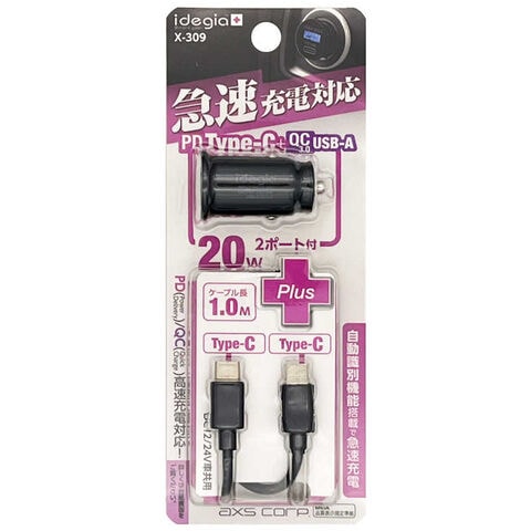 アークス コンパクトDC充電器PD+QC ケーブルC/C付属 ブラック X-309