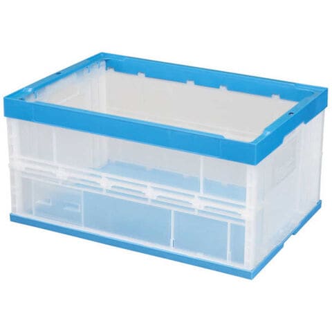 容量(L):75、色:透明ブルー、外形寸法(mm)間口×奥行×高さ:650×440×329、有効内寸(mm)間口×奥行×高さ:600×405×310、折りたたみ高さ(mm):78