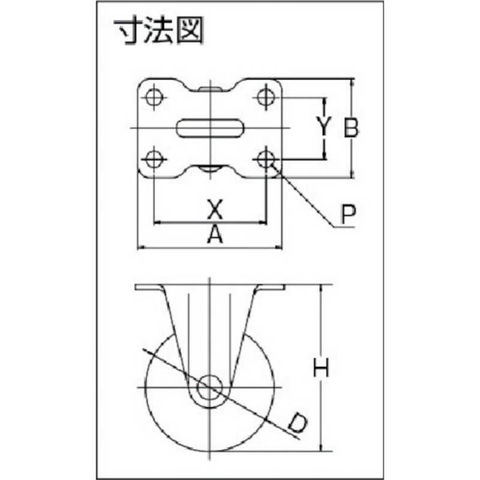 許容荷重(kgf):10.2、車輪径D(mm):25、車輪幅(mm):12、取付高H(mm):35、取付座A×B(mm):36×18、取付ピッチX×Y(mm):29(2穴)、取付穴径P(mm):4.2、許容荷重(N):100、質量(g):25、許容荷重(daN):10