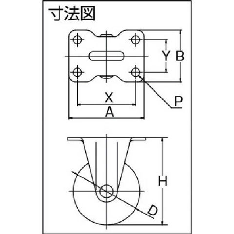 許容荷重(kgf):20.4、車輪径D(mm):38、車輪幅(mm):17、取付高H(mm):50、取付座A×B(mm):46×25、取付ピッチX×Y(mm):36×15、取付穴径P(mm):5.3、許容荷重(N):200、質量(g):55、許容荷重(daN):20