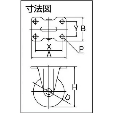 許容荷重(kgf):28.56、車輪径D(mm):38、車輪幅(mm):16、取付高H(mm):50、取付座A×B(mm):46×25、取付ピッチX×Y(mm):36×15、取付穴径P(mm):5.3、許容荷重(N):280、質量(g):55、許容荷重(daN):28