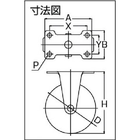 許容荷重(kgf):30.6、車輪幅(mm):20、許容荷重(N):300、車輪径 D(mm):50、取付高 H(mm):65、取付座 A×B(mm):70×42、取付ピッチ X×Y(mm):56×28、取付穴径 P(mm):6.5、質量(g):135、許容荷重(daN):30