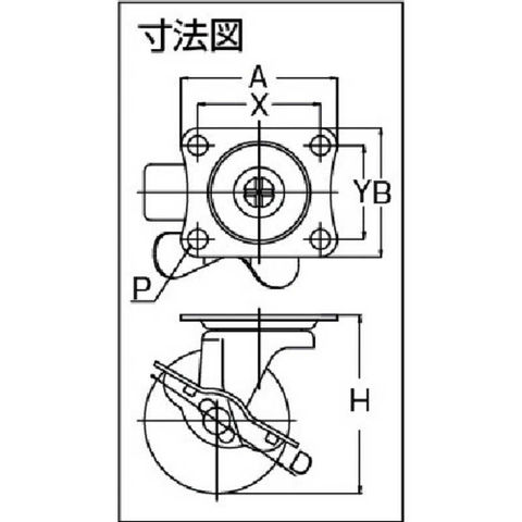 許容荷重(kgf):28.56、色:透明、車輪幅(mm):16、許容荷重(N):280、車輪径 D(mm):38、取付高 H(mm):50、取付座 A×B(mm):46×38、取付ピッチ X×Y(mm):36×28、取付穴径 P(mm):5.3、質量(g):105、許容荷重(daN):28