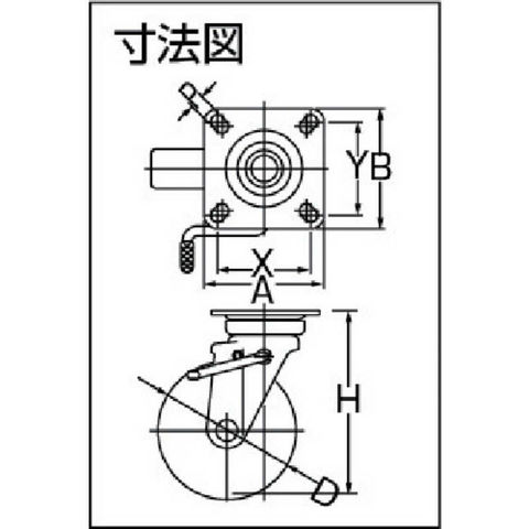 許容荷重(kgf):102、車輪幅(mm):32、許容荷重(N):1000、車輪径 D(mm):75、取付高 H(mm):103、取付座 A×B(mm):82×82、取付ピッチ X×Y(mm):63×63、取付穴径 P(mm):9.5、質量(kg):0.49、許容荷重(daN):100