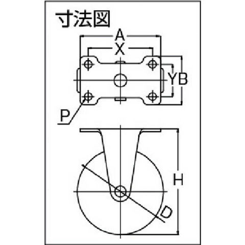 許容荷重(kgf):38.76、車輪幅(mm):21、許容荷重(N):380、車輪径 D(mm):50、取付高 H(mm):65、取付座 A×B(mm):70×42、取付ピッチ X×Y(mm):56×28、取付穴径 P(mm):6.5、質量(g):120、許容荷重(daN):38