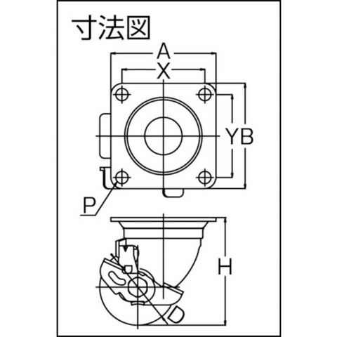許容荷重(kgf):163.2、車輪幅(mm):28、許容荷重(N):1600、車輪径 D(mm):50、取付高 H(mm):68、取付座 A×B(mm):64×64、取付ピッチ X×Y(mm):50×50、取付穴径 P(mm):6.5、質量(g):365、許容荷重(daN):160