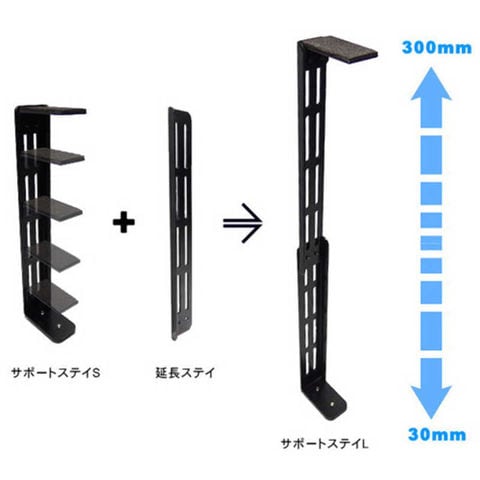 本製品はL ロングタイプ:対応高さ 30mm~300mmまで対応しています。※延長ステイが同梱しています。