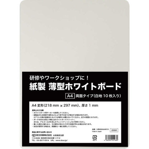 欧文印刷 欧文印刷 紙製 薄型ホワイトボード A4判 UBNGWA4W10