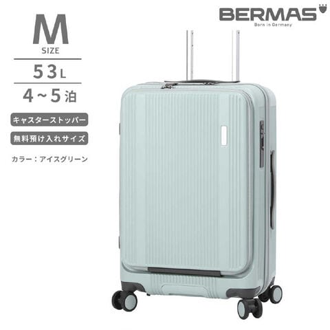 BERMAS 静音キャスター ストッパー付 フロントオープンキャリー 無料預け入れ Mサイズ Travel Smart [TSAロック搭載] アイスグリーン 60551