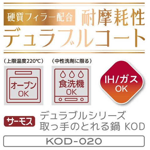 サーモス デュラブルシリーズ 取っ手のとれる鍋KOD ディープレッド KOD-020-DR