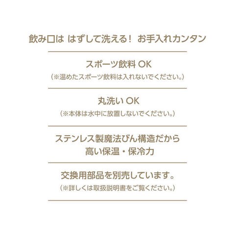 ●ステンレス製魔法びん構造だから高い保温・保冷力