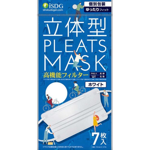 医食同源 立体型プリーツマスク ゆったりフィット(ホワイト) 7枚入