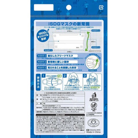 ●素材: マスク本体・フィルター(ポリプロピレン) 耳ゴム(ナイロン、ポリエステル、ポリウレタン) ノーズフィット(PE樹脂)