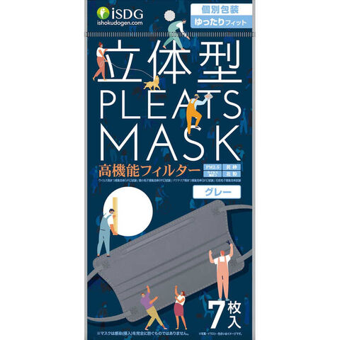 医食同源 立体型プリーツマスク ゆったりフィット(グレー) 7枚入