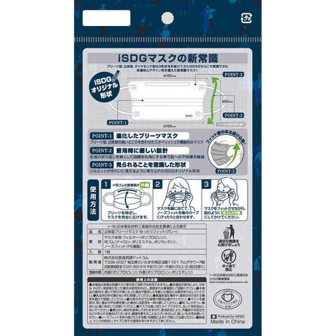 ●素材: マスク本体・フィルター(ポリプロピレン) 耳ゴム(ナイロン、ポリエステル、ポリウレタン) ノーズフィット(PE樹脂)