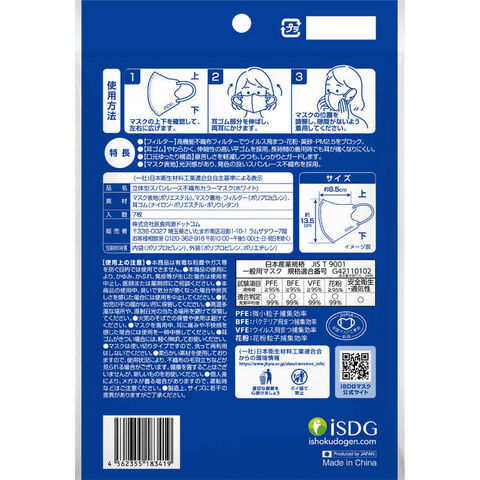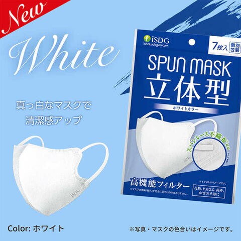 医食同源 SPUNMAS 立体型スパンレース不織布カラーマスク 7枚入 ホワイト