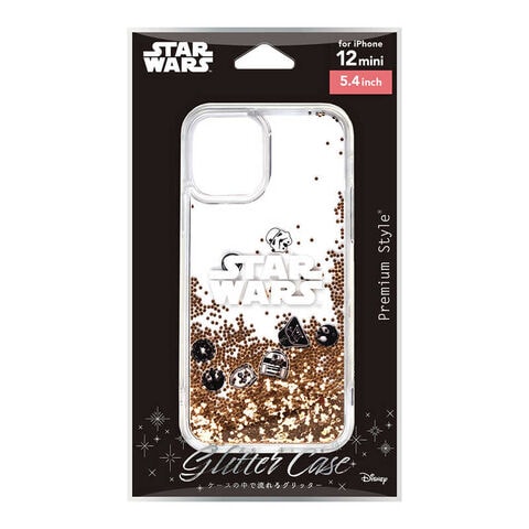 「STAR WARS」キャラクターデザインのキラキラ輝くグリッター入りのiPhone 12 mini用グリッターケースです。