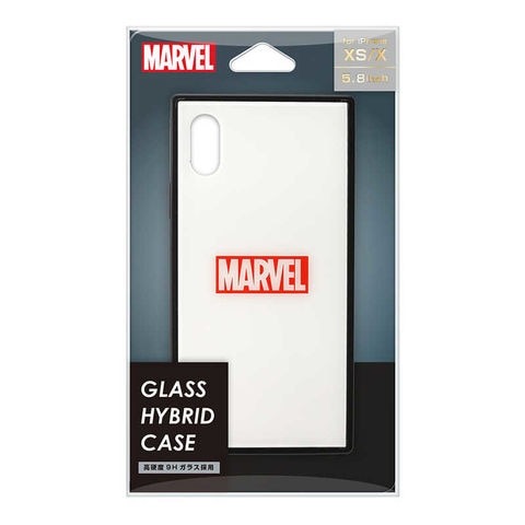 MARVELロゴデザインのiPhone XS/X用 ガラスハイブリッドケースです。