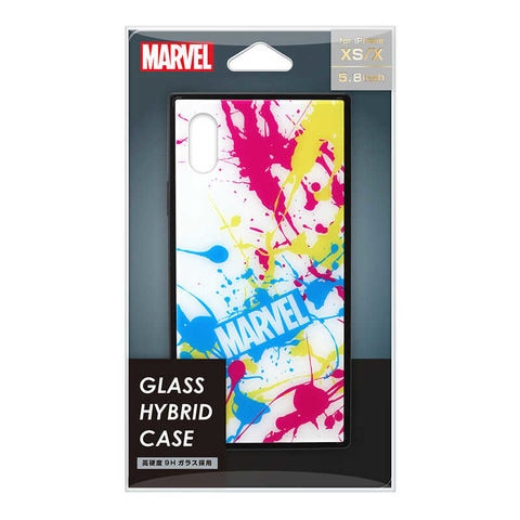 MARVELロゴのスプラッシュデザインがクールなiPhone XS/X用 ガラスハイブリッドケースです。