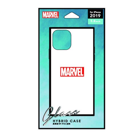 MARVELのロゴデザインのガラスの光沢とTPUの一体感が美しいハイブリッド設計のiPhone 11 Pro用ガラスハイブリッドケースです。