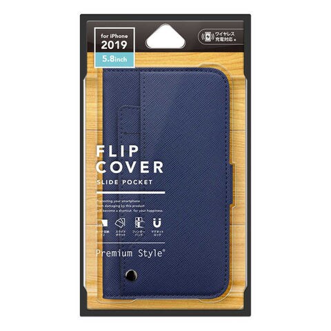PGA iPhone 11 Pro 5.8インチ用 スライドポケットフリップカバー ネイビー [PG19AFP11NV] PG-19AFP11NV ネイビー
