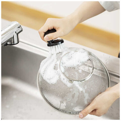コシの強いポリプロピレンの毛が、まな板やザルの網目に詰まった汚れをしっかりかき落します。