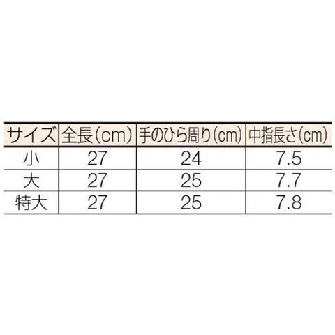 サイズ:大、試験電圧(1分間):3000V、全長(cm):27、手のひら周り(cm):25、中指長さ(cm):7.7、全長(mm):270、質量(g):140