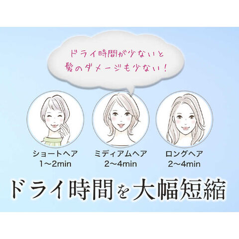●ヘアドライヤーの吹出口に搭載した1立法cmあたり約3億個の高濃度マイナスイオンが髪の潤いを守り、静電気を抑えることで、毛芯に水分を浸透させて潤いを与えます。