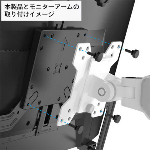 VESA穴が無いモニターなどをVESA100穴対応のモニターアームに取り付けるためのアダプタです。