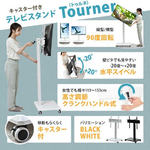 BBファニシング 昇降ハンドル付きテレビスタンド Tourner(トゥルネ) ホワイト ONTV0364KIWHT