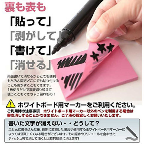 両面書いて消せるからとても便利。もちろん両方どこにでも貼り付けることも剥がすこともできます。