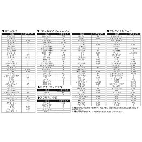 A/O/C/BFの4タイプの海外コンセント形状に対応。