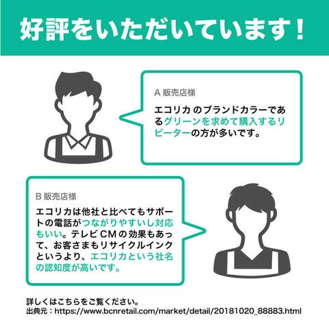 回収されたカートリッジのうち、再利用可能な約50%をリユースし、エコリカの製品として販売しています。