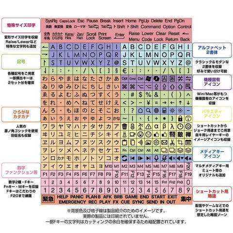 ●通常キーボードに採用されている109キーを大幅に超えた420種の印字を収録しました。