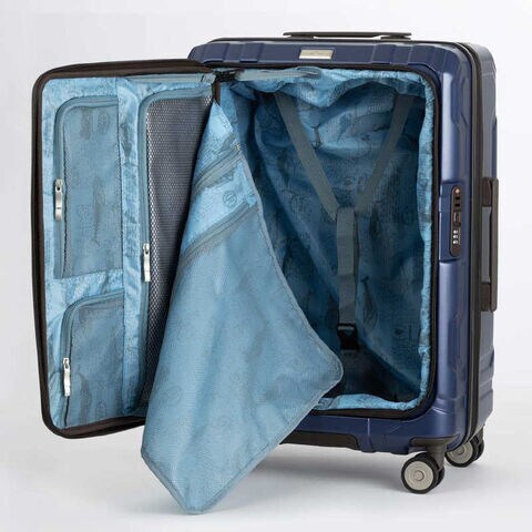 ・拡張部分の上下には特許技術を用いた形崩れを防止する特殊プレートを内蔵 ※荷物の出し入れ時にスーツケースを横にしても形状が崩れません。