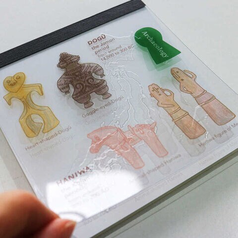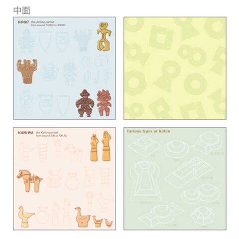 はにわや土偶のイラストと説明を詰め込んだ、図鑑のようなメモ帳。
