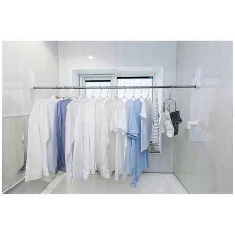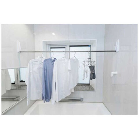 浴室の壁面にポール受けをマグネットで取付けてポールを渡してものほし空間に!
