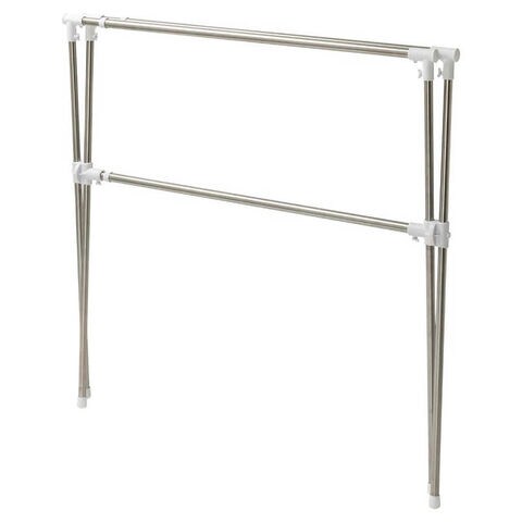 仕様1:【本体サイズ】《使用時》(約)幅134~230×奥行76×高さ115cm、《収納時》(約)幅134×奥行8×高さ131cm【本体重量】約4.3kg【素材・材質】パイプ/ステンレス・スチール、成型部品/ABS樹脂・PP樹脂、ネジ/スチール(メッキ)