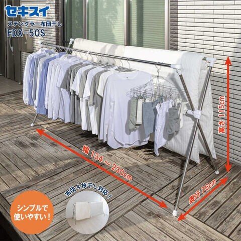 積水樹脂 布団干し 4枚干し 多機能 伸縮 折り畳み ステン&ホワイト FDX-50S