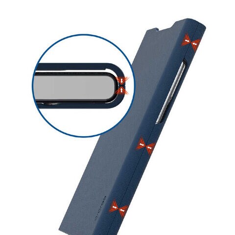 画面を保護するフリップを閉じると、端末を包み込むように表と背面のケース端がピッタリ合わさります。マグネット内蔵のエッジ部がフリップをしっかり固定し、端末を360°保護します。