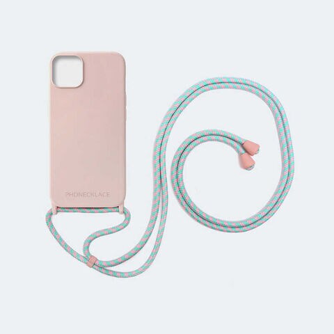 ROA iPhone 15 Pro(6.1インチ) ストラップホール付キシリコンケース+Rope Strap PHONECKLACE パウダーピンク PN25671i15