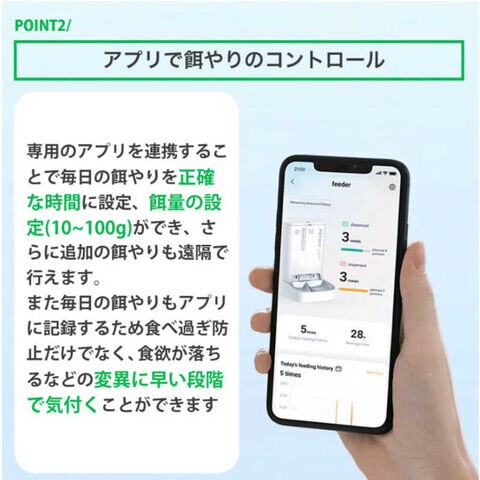 専用のアプリで毎日のご飯の時間を設定したり、追加のご飯もアプリから簡単に上げることができます。