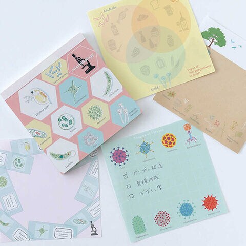 微生物のイラストと説明を詰め込んだ、図鑑のようなメモ帳。