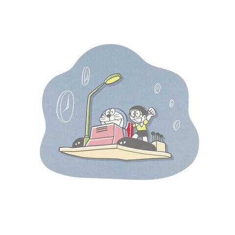 ドラえもんたちがひみつ道具を使うシーンを切り取ったダイカットポストカード。