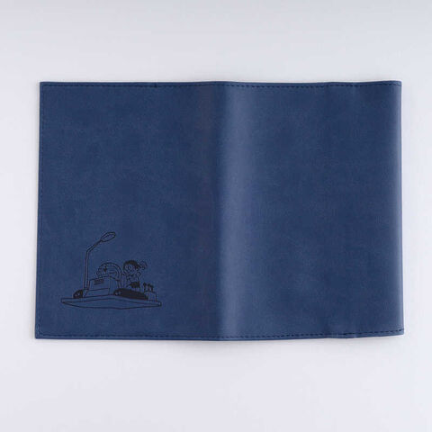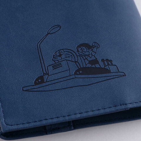 ひみつ道具を使用したシーンを型押しで表現したブックカバー。