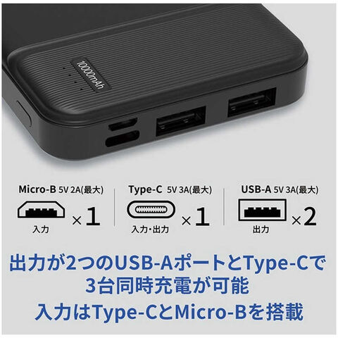 最大入力 Type-C:3A/5V MicroB:2A/5V