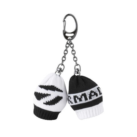 ロゴグラフィックとメタルTロゴが織り込まれたニットボールケース。
