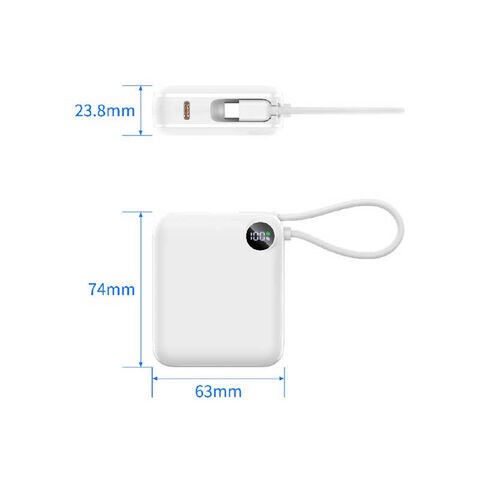 大容量でコンパクトな設計、PD急速充電、Type-Cケーブル内蔵、2台同時充電可能、残量表示LED付 外出時の強い味方!