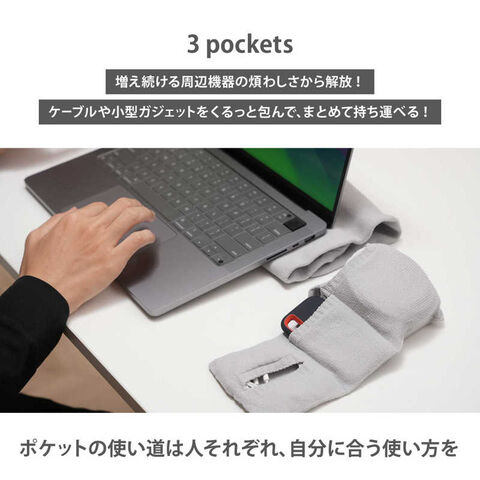 返しの付いたポケット構造によりガジェット等の脱落を防ぎます