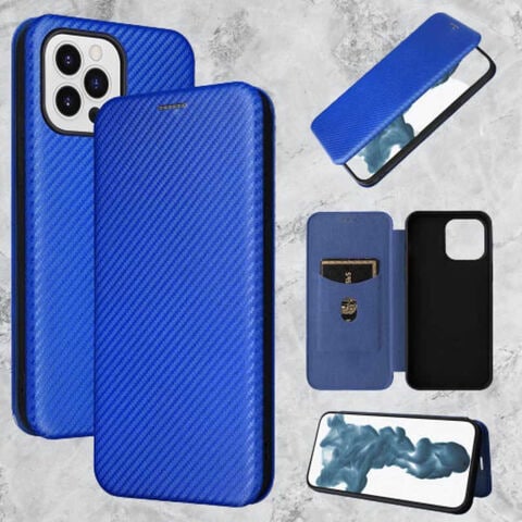 ROYALMONSTER iPhone 14Pro用カーボンファイバー製手帳型ケース BL RM-14PRCb-BL